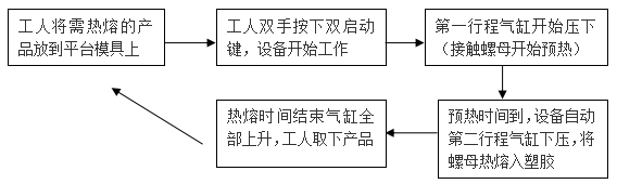 二、 雙氣缸雙行程螺母熱熔設備的工作(zuò)流(liú)程循(xún)環圖: